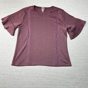 COMO Vintage Crimson Ruffle Short Sleeve Blouse Size Small Stretch Crochet Lace