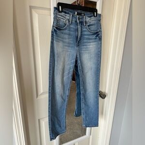 Timeless yet very of-the-moment, these high-rise jeans feature straight legs, light distressing and Fab Ab front pockets that comfortably slenderize your figure.