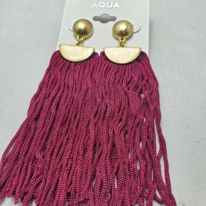 AQUA BURGUNDY FRINGE TASSEL PIERCED EARRING GOLD TOP