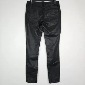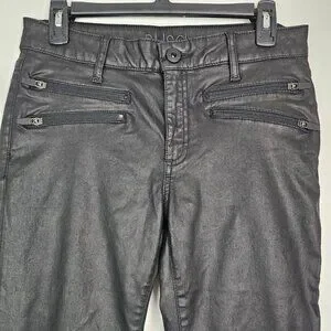 DL1961 Florence Insta Sculpt Epiphany Black Coated Moto Skinny Jean, size 30. Coated denim, mid rise, button/zip fly, moto style zip pockets, has stretch. Excellent pre-owned condition.