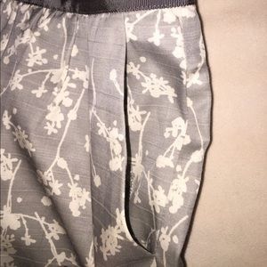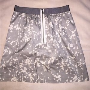 New without tags Ann Taylor Loft grey and white floral skirt in a size 0. The outer portion of the skirt is made of cotton and silk, while the inner lining is entirely cotton. The skirt has a back zipper and pockets on both sides