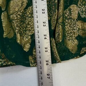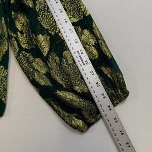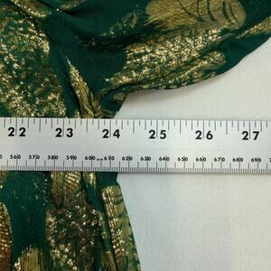 Mille Resort Travel Womens Blouse Green Gold L Silk Ruffle Mock Neck Sheer Party