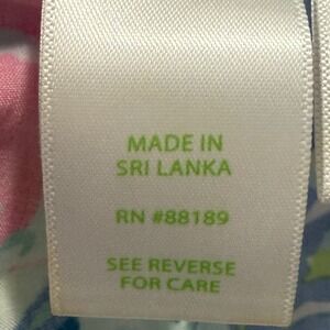 The product is a pair of Lilly Pulitzer shorts for women in size L with a multicolor coral fish print design named Katia. These pull-on shorts have a mid-rise fit, a 5-inch inseam, and a flat front. Made of rayon fabric, they are machine washable and feature slash pockets. Perfect for summer occasions like traveling, activewear, or casual outings, these shorts are ideal for beach or fishing activities due to their fish-themed design. The vibrant floral pattern and regular fit make them a stylish and comfortable choice for warm weather.