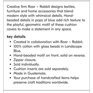 West Elm Roar + Rabbit Hand Beaded Pillow Covers Blue White Pink 17x17 new with tags. Sold separately but have quantity of 4 two with tags and two without. All are brand new - this is just for the covers.