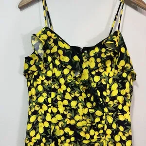 PARKER Erica Lemon Ruffle Mini Dress Black Yellow Size 6