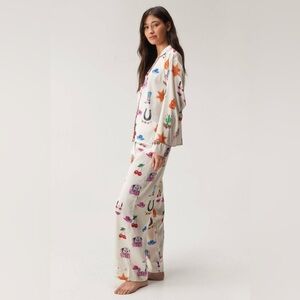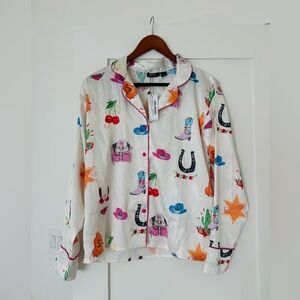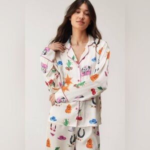 Satin cowboy-inspired pyjama set with vibrant Western motifs