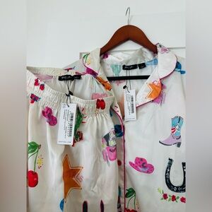 Brand new with tags NastyGal- Such a darling western cowgirl satin pajama set in Champagne.