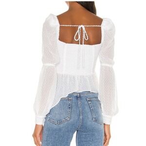 SONG OF STYLE White Swiss Dot Ruffle Peplum Square Neck Long Sleeve Top XXS