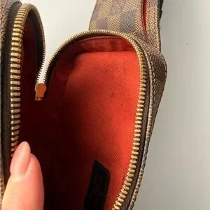 Beautiful Louis Vuitton Damier Ebene Geronimos Crossbody Bag. Exterior and hardware are very clean, interior has some staining that could use a clean. Perfectly working double zipper. Great condition sling bag
