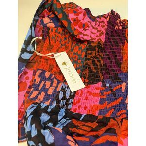 J. MARIE NWT The Jade Square Neck Ruched Midi Dress Multicolor Floral Large