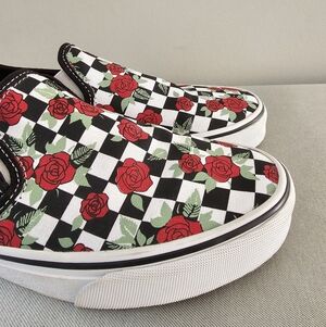 VANS Asher Checkerboard & Roses Womens Slip On Sneakers, Shoes