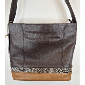 THE SAK De Young Hobo Shoulder Bag Brown Mahogany Leather Snakeskin Trim Purse