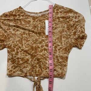 PACSUN Pac Cares Tie Front Crop Top NWT Size Small | Sand Marble Print Short Sle