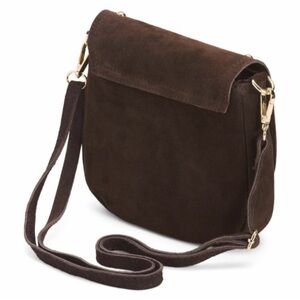 Discover the perfect blend of style and functionality with this elegant brown suede crossbody bag. Adorned with gold accents, it adds a touch of sophistication to any outfit. Ideal for everyday use or special occasions.