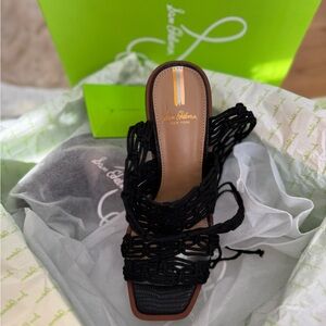 Sam Edelman Black and Brown Strappy Heels Harleigh macramé heels sandals NWT