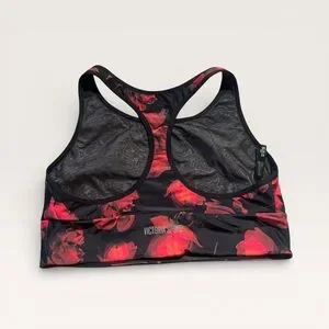 Victoria's Secret Black and Red Floral Sports Bra, Large