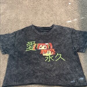 Anime-inspired design on a charcoal tee. Soft and trendy. Ideal for casual wear.