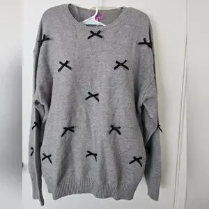 Edikted Gray Melange Grey Oversized Sweater Black Bows NWT