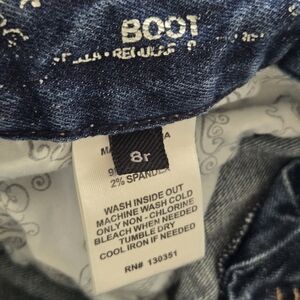 98% cotton, 2% spandex. 90s Express jeans with a bootcut. Waist measures flat at 17" with a 28" inseam. Good condition. Size 8.
