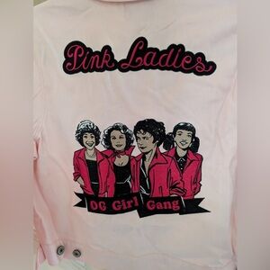 Features front pockets and embroidered patches on back: “Pink Ladies” and “OG Girl Gang” featuring the girls Rizzo, Jan, Frenchie, & Marty