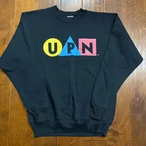 Elevate your street style with this pre-owned Onieta Vintage Y2K UPN Network TV Crewneck Sweatshirt in sleek black. Crafted in the USA, this medium-sized pullover is in great condition, making it a must-have addition to your wardrobe. Embrace nostalgia with this vintage piece that is sure to turn heads wherever you go.