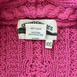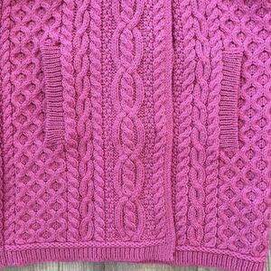 Aran Crafts 100% Merino Wool Cable Knit Cardigan Size XXS Chunky Pink Ireland
