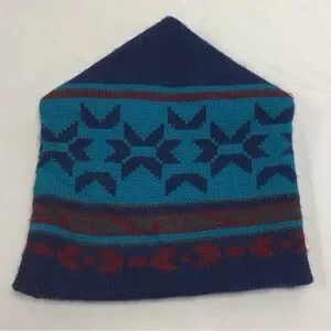 Vintage Geometric Blue and Red Knit Beanie