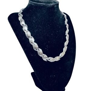 Vintage Trifari TM silver-tone choker necklace featuring bold sculptural twisted link design.