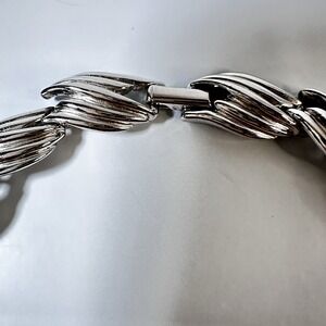 Trifari TM Silver Tone Choker Necklace 15" Sculptural Linked Mid Century