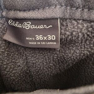 Eddie Bauer Olive Fleece Lined Tech Pants Sz 36×30 Hiking Outdoor Trails Granola