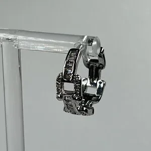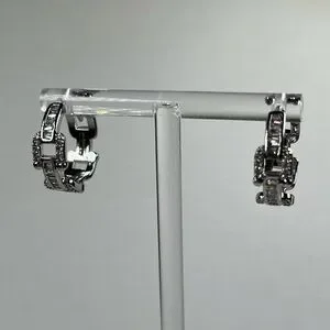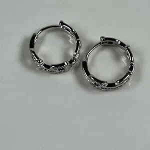 White Gold Plated Clear CZ Huggie Hoop Earrings