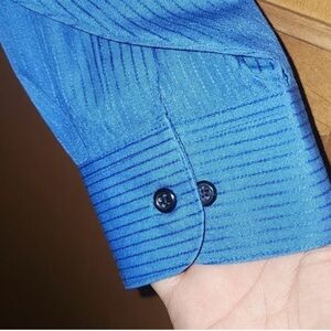 Van Heusen like new condition blue satin striped shirt button front