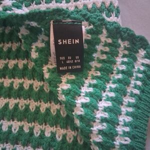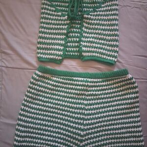 Stylish green and white knit two-piece set by Shein. Perfect for casual outings, the beach or pool.