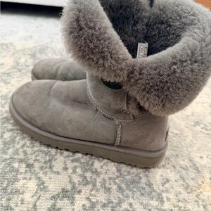 Cozy and warm winter boots. Soft shearling lining. Ideal for cold weather. Tear in top of boot, as pictured.