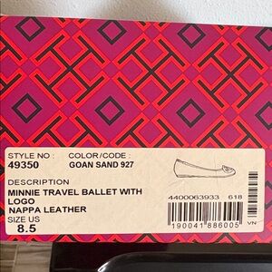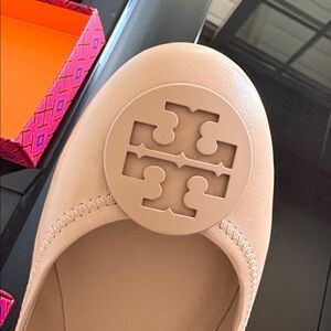 Tory Burch MINNIE TRAVEL BALLET WITH LEATHER LOGO. In Goan Sand. Size 8.5.