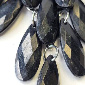 Black Glass Bead Long Earrings Chandelier Teardrop Diamond Shape Drop Earrings