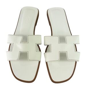 HERMES Oran White Leather H Women's Sandals Made in Italy Marked as 39 - 9US