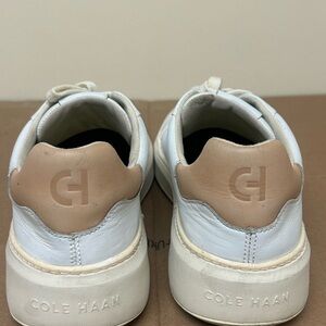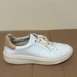 Chic Cole Haan sneakers in white with tan accents. Ideal for casual outings.