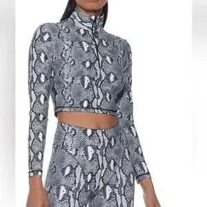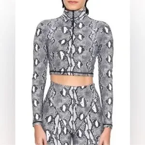 Adam Selman Python print cropped top sweatshirt zipper S $180 NEW