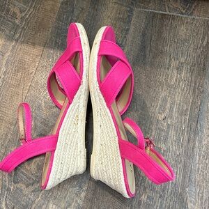 Talbots Lyndsay Crossover Espadrille Pink Wedge Sandals Size 10