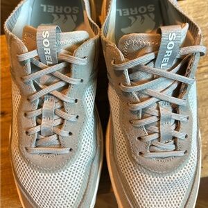 Like New with minimal scuffing underneath and a small stain on top left shoe (see images)