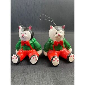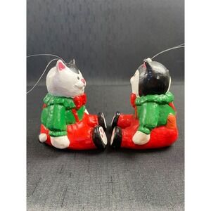 Department 56 Cat Ornament Set 2 Christmas Kitty Black White Santa Gift