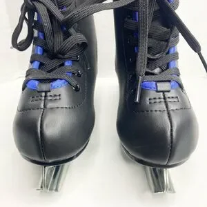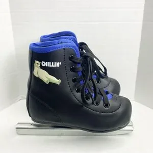 American Athletic Youth Boys Size 8 Chillin Double Runner Ice Skates Black Blue