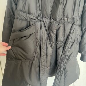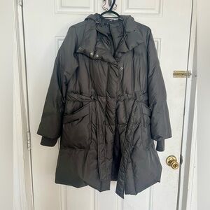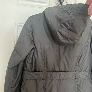 Stay warm and stylish with this gray hooded puffer coat. Perfect for chilly days, it offers comfort and a sleek look. 100% Polyester.