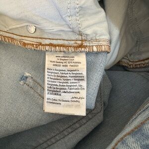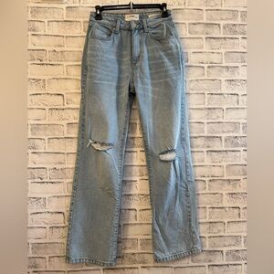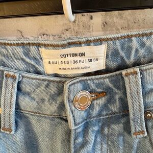 Women’s. Cotton On. Light wash slim straight jeans. Distressed knees. Preowned excellent condition. No stains/tears. Size 4.