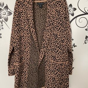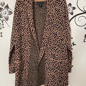 Cynthia Rowley Long Open Front Leopard Print Jacket - Women's M