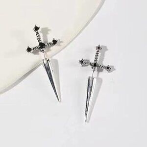 Black Sword Earrings with Rhinestones Brand New !!