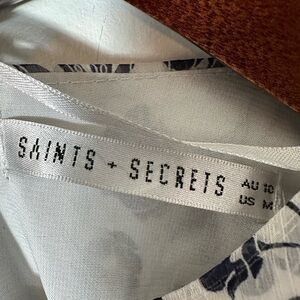 Saints + Secrets White & Black Floral Ruffle Boho Women’s Dress Size Medium