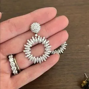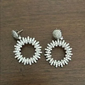 These stunning silver crystal hoop earrings add a touch of elegance to any outfit. Perfect for special occasions or everyday wear.