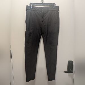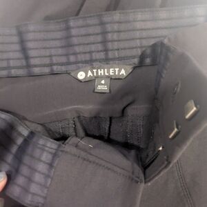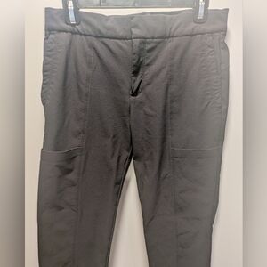 Athleta's Wander Stash Ankle Pant in black size 4, but fits like an 8. I bought these to commute and wear to work as a dressed up athleisure pant in early 2020, so they're in great condition aka very rarely worn. I prefer a higher rise and find these sit quite low, and imagine they'd really fall off a true size 4. Skinny through the leg makes these a great pant to wear with a chelsea, heeled, or winter boot.